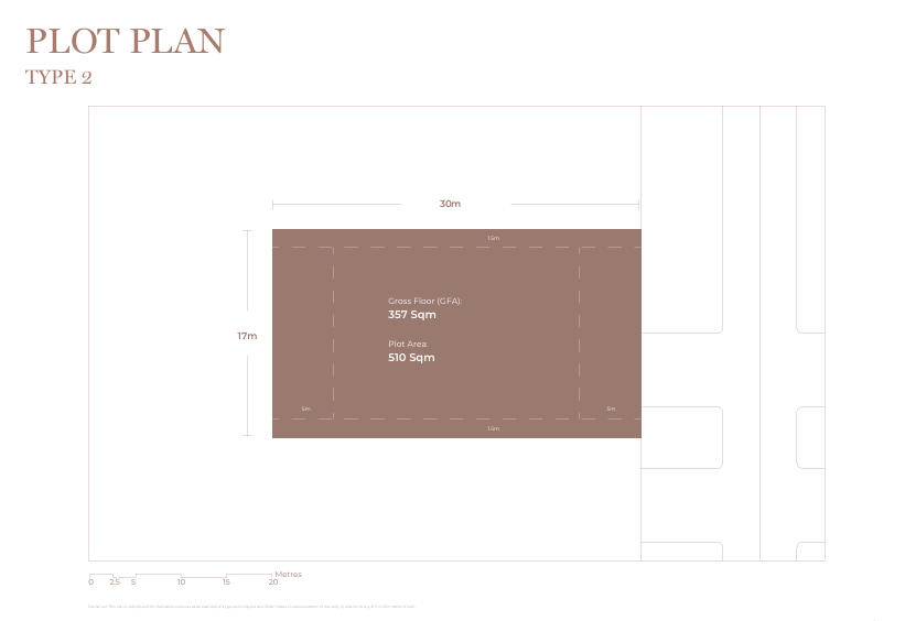 - The master plan comprises over 230 residential plots, categorised into five types (Type 1 to Type 5), providing flexibility for custom villa designs ranging from 3 to 8 bedrooms.