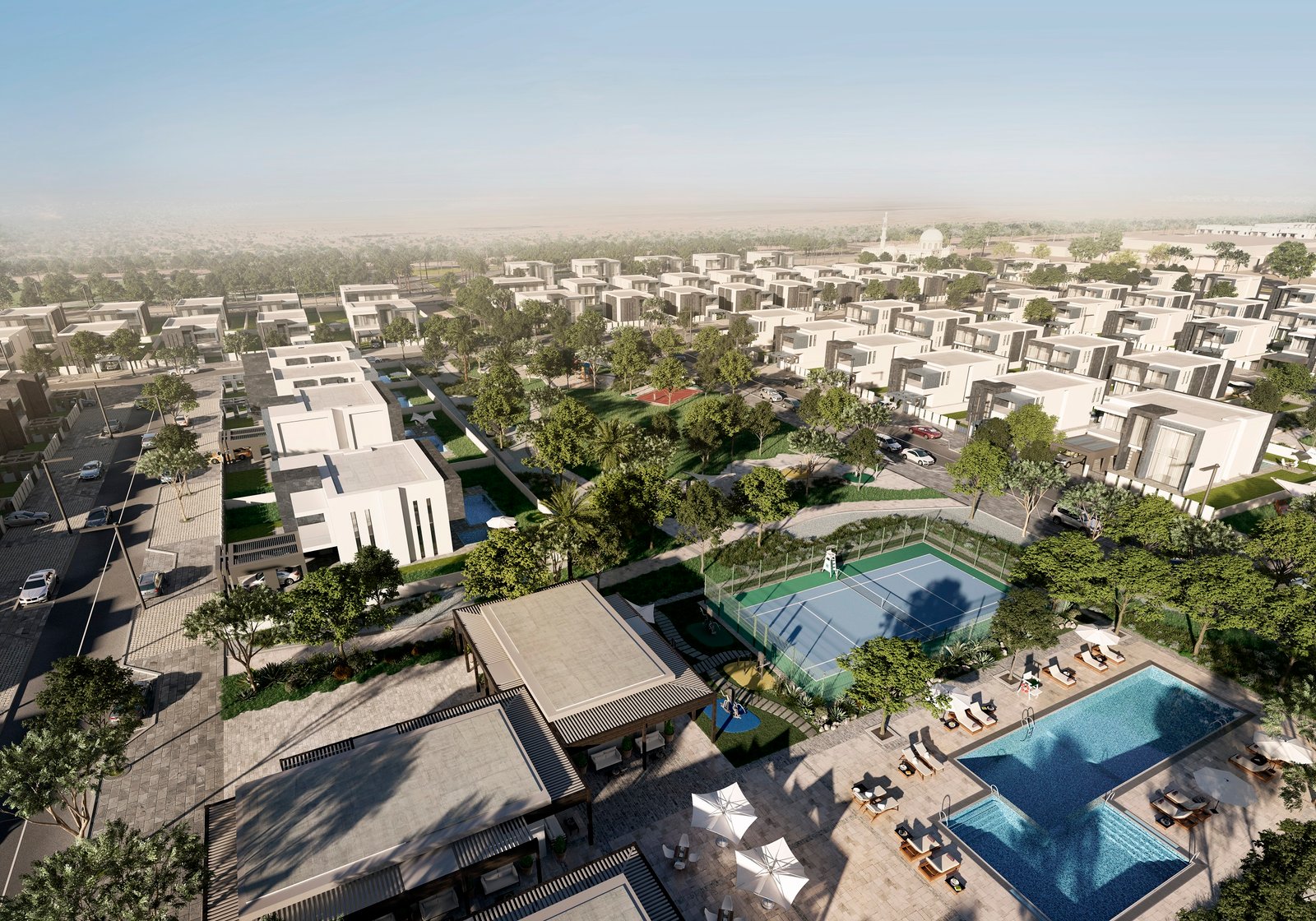 Residents enjoy access to parks, swimming pools, playgrounds, BBQ and picnic zones, schools, mosques, and the full-length 9-hole Yas Acres Golf Course.