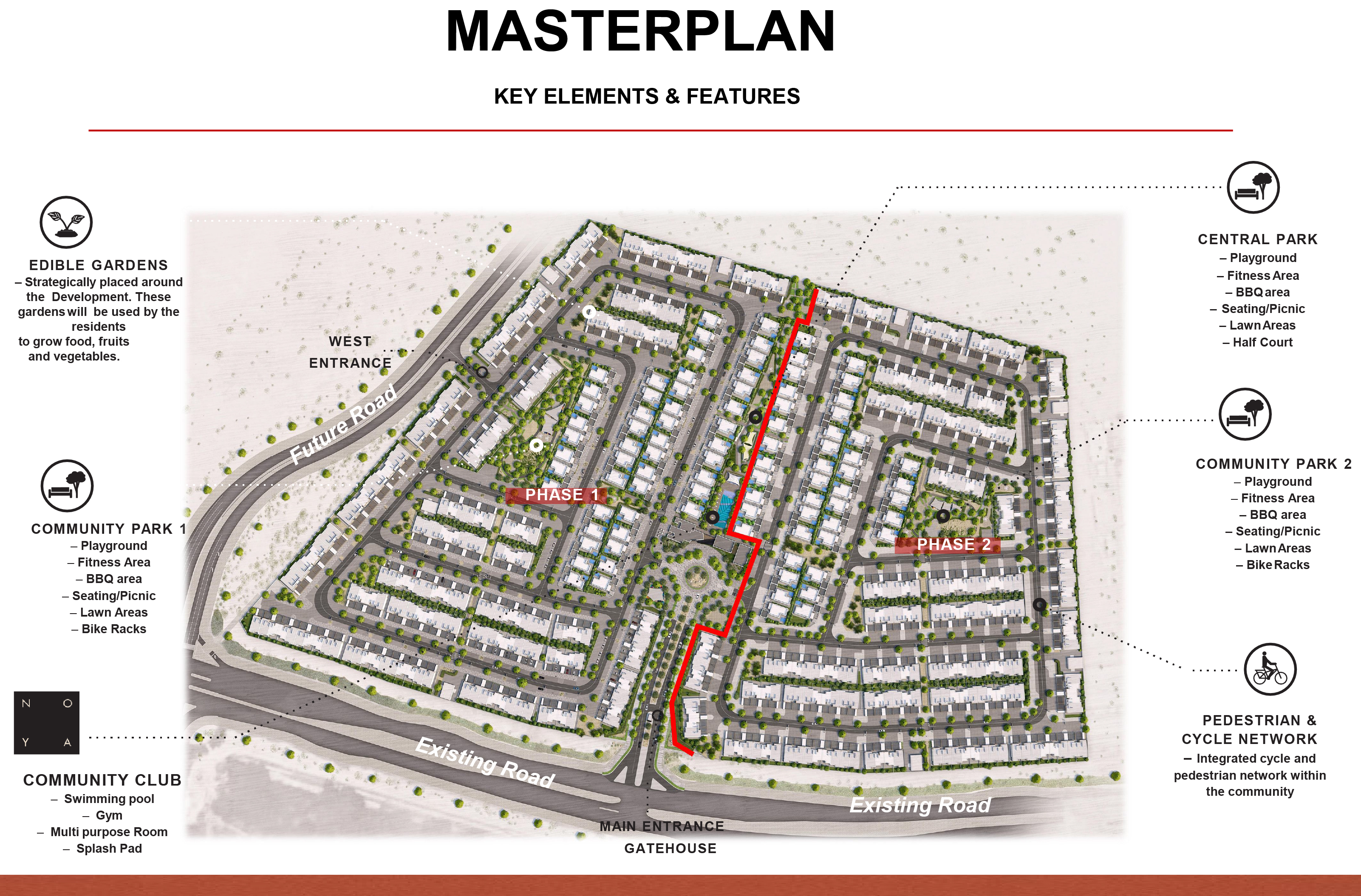 • Residents can enjoy high-end communal amenities including: Swimming pools (adult & kids splash pad), gymnasium, Playgrounds, BBQ areas, picnic lawns, Community clubhouse & multipurpose hall, Pedestrian and bike trails, Edible/community gardens, mosque, tennis, basketball courts